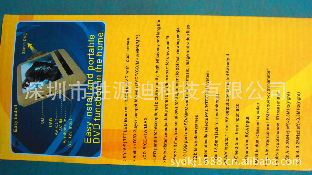 •內置DVD/VCD/MP3/MP4/MP5/CD-R/CD-RW/DIVX格式播放功能