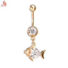 歐美新款肚臍環環扣臍釘鑲鉆臍環***金魚動物肚臍扣 廠家