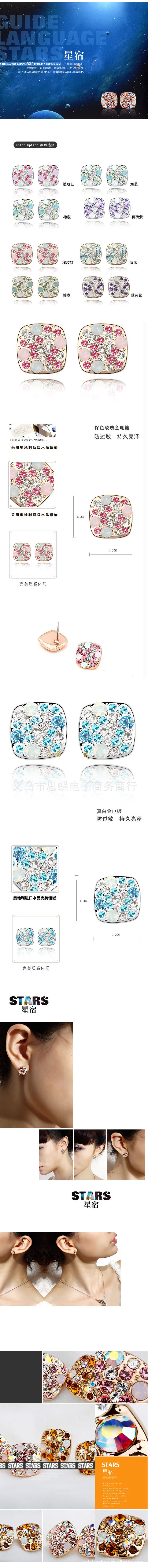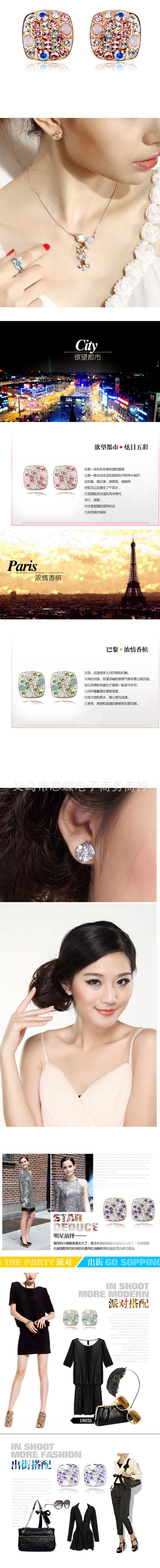 廠家*** 時尚方形滿鉆韓國女款飾品奧地利水晶耳釘環墜 飾品批發
