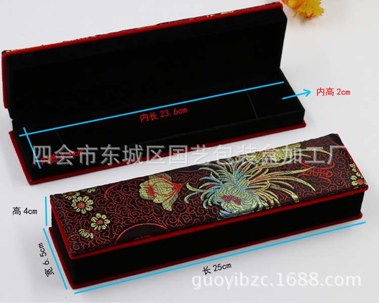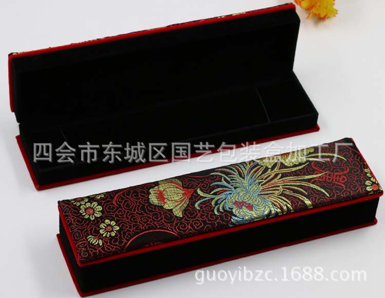 ***玉器珠寶首飾包裝盒廠家***古書法錦緞植絨布手鐲盒批發