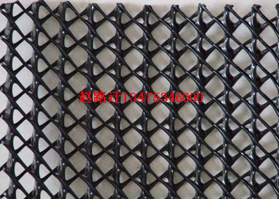 排水網中的三維排水網是一種新型土工合成材料。組成結構是一個三維的土工網芯,兩面都粘有針刺穿孔無紡土工織物。三維土工網芯包括一個厚的垂直肋條,以及頂部和底部各一條斜置的肋條。能夠迅速地排出道路的地下水,自身還有一個孔隙維護系統,能在高荷載下阻斷毛細水。同時,它還能起到隔離和地基加固作用。一種新型土工合成材料。