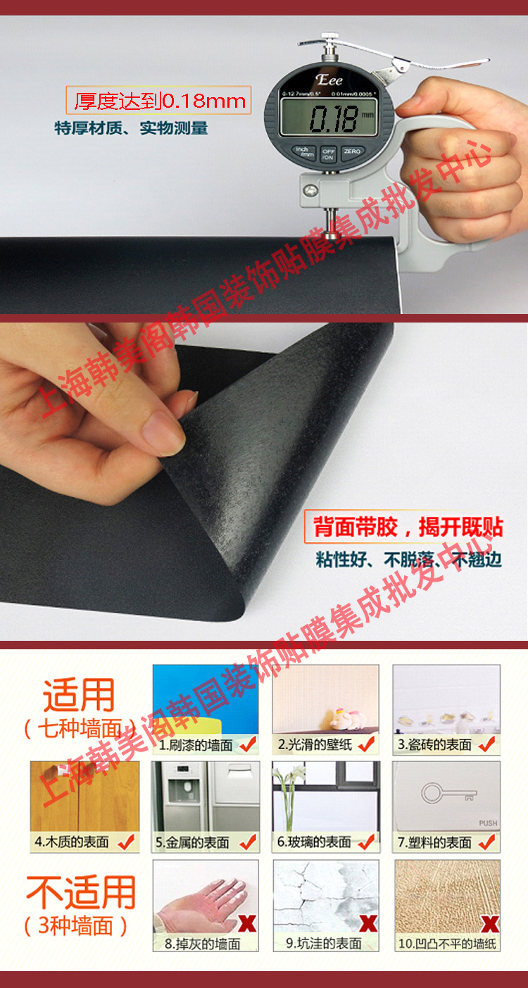 性能:綠色環保,背面帶膠施工簡單 ,產品自帶阻燃耐磨防水等功能。