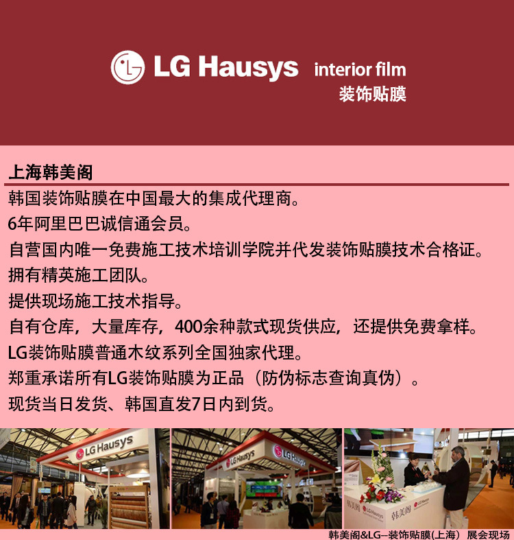產品說明:裝飾貼膜是進入中國市場的高科技新型裝飾材料。不含有任何有害于人體的成分。利用壓延機設備及第二次加工設備而生產的新型環保產品,利用尖端的印刷技術及特殊的制作工藝,在特殊加工的膠片上開發出多種款式的紋理和表面具有凹凸和立體感的很多種類,與原來的收尾材料相比,擁有款式更多的特點,包括自然質感的木紋系列,高品質感的金屬系列,立體感很強的皮系列,還有顯大氣的大理石系列,是按照消費者要求的氣氛和用途,可以選擇適當款式的裝飾施工收尾材料。而且, 經特殊剪貼處理,在平面及至曲面上的施工變得簡易,與其它收尾材料相比,既經濟又易于施工。他對于碰撞, 摩擦,涂料等的耐久顯著以及防潮, 耐熱,易除污垢等效果顯著,主要用于高級場所的收尾處理,如禮堂、飯店、賣場、百貨商場、賓館、辦公室、機場、公寓、別墅、電梯口、劇院、可貼于鞋柜、書柜、衣柜、書桌、板材、玻璃等等一切表面平滑的基材上 用于衣柜書柜等家具翻新,可瞬間將家具煥然一新。pvc裝飾貼膜在國內獲得了消防防火認證,因此不需要做其他防火處理,希望廣大顧客前來光顧。