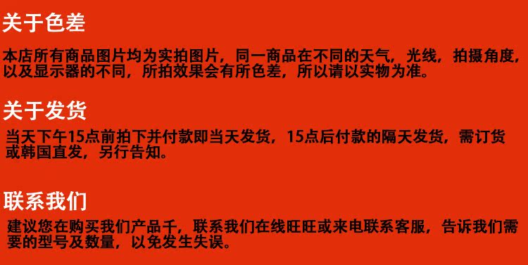 貨期:國內現貨一個工作日以內發貨,韓國現貨7-10天到貨(假期有特殊情況)。