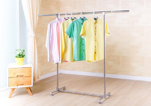 不銹鋼晾衣架,是上下伸縮設計,可掛放或晾曬衣服一舉兩得,安裝簡便,方便移動。