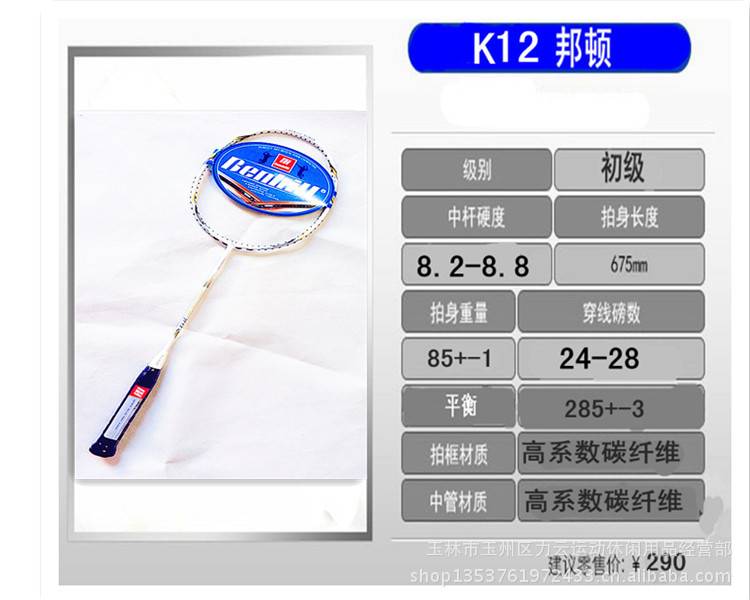 正品K系列新品經典全碳素控球初學拍邦頓K11/12/13羽毛球拍促批發