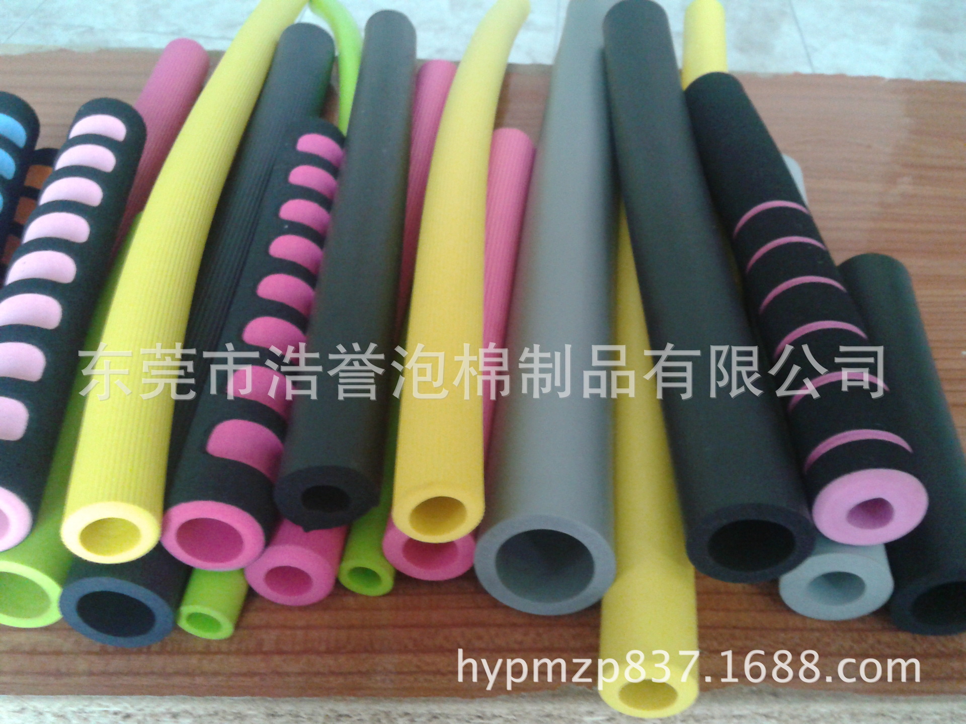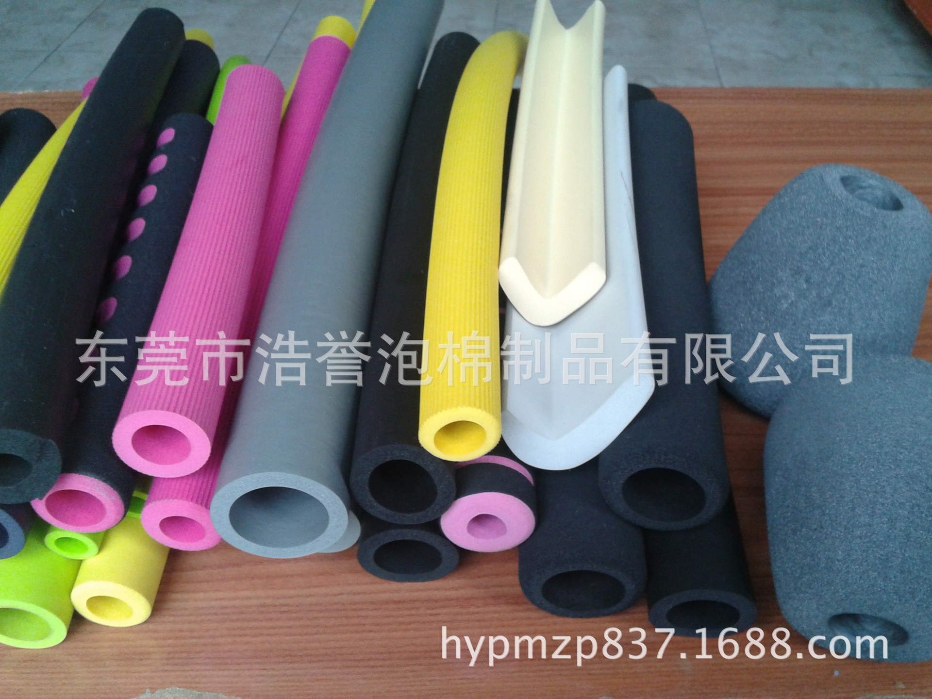 材料特點:1、樣象海綿,極富彈性,手感輕柔不傷手;2微孔材料,閉孔結構,吸水率低;3、光面管表面富塑膠光澤,磨面管表層則為天然磨砂面,倍顯高檔,止滑性好;4、阻燃性耐候性好,無毒性。泡孔粗細/硬度顏色/大小在發泡時可以調節??杉庸す饷?磨砂面,直角/圓角及各種形狀