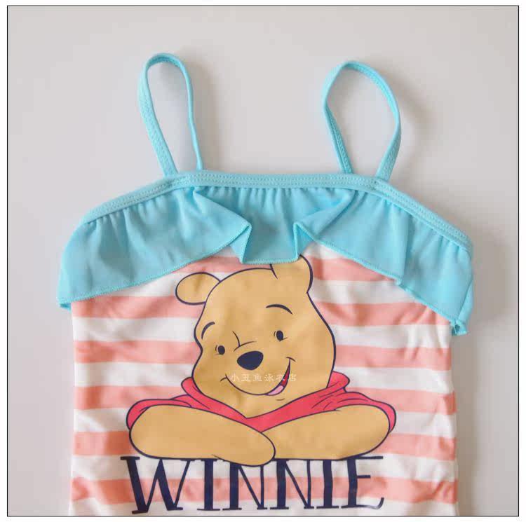 外貿原單2013迪士尼兒童游泳衣女童連體寶寶泳衣維尼熊 正品