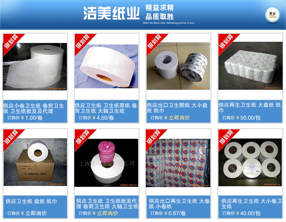 上海潔美紙業有限公司是生活用紙、小卷衛生紙、大盤紙、小盤紙、紙巾等產品專業生產加工的有限責任公司,產品主要銷往美國、英國、澳大利亞等多個國家,公司總部設在上海浦東新區林浦路848弄19號,誠信、速度和產品質量是潔美人的追求。歡迎各界朋友蒞臨上海潔美紙業有限公司參觀、指導和業務洽談。