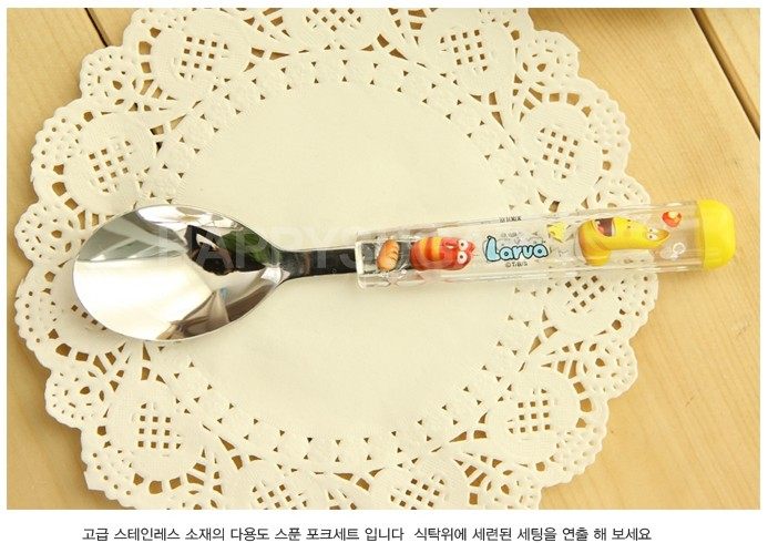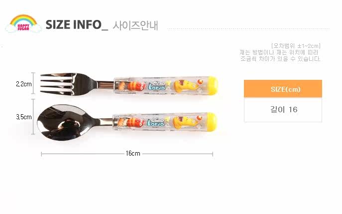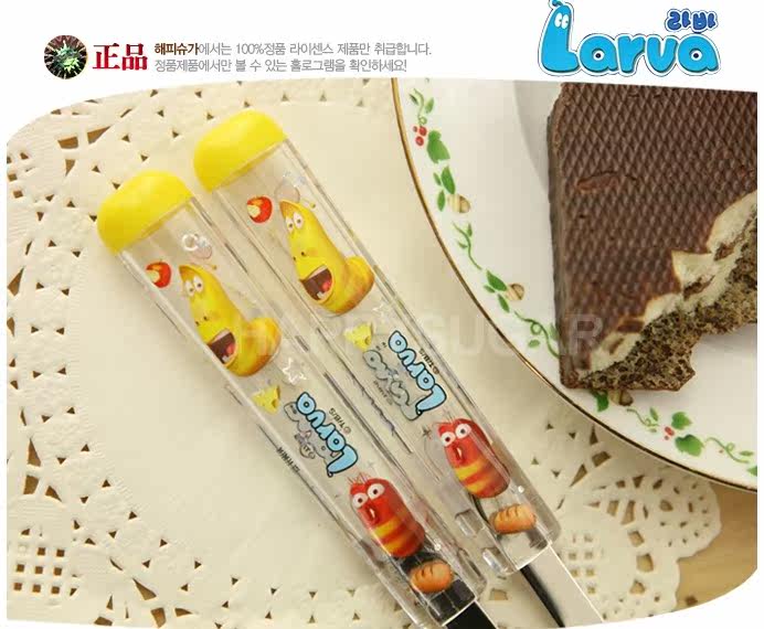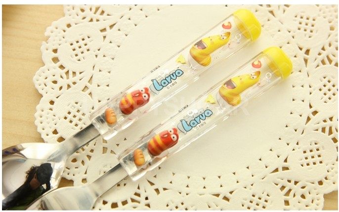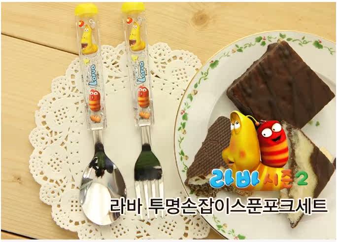 韓國進口LARVA放屁蟲兒童餐具爆笑蟲寶寶不銹鋼勺子叉子透明手柄