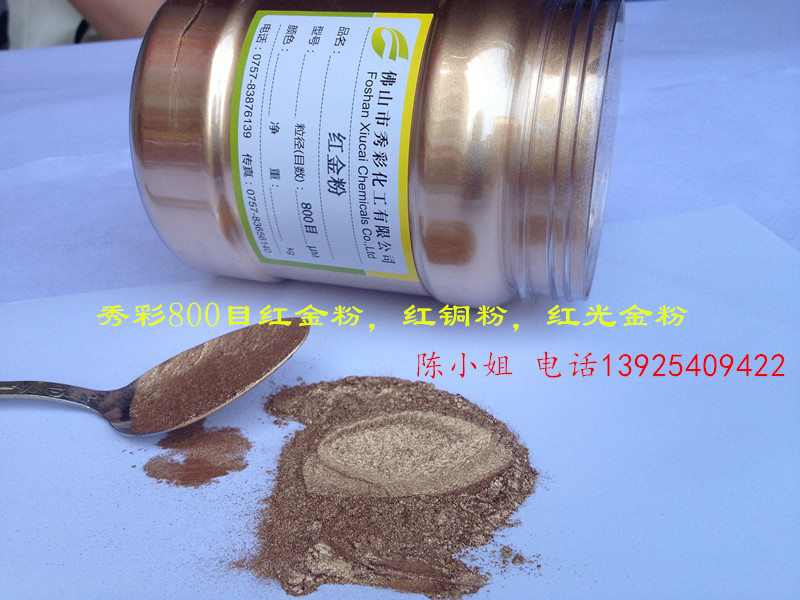 · 銅金粉是一種浮型片狀顏料,由一定比例的銅、鋅和鋁合金,經熔煉、球磨、分級而成。其顆粒越粗,金屬感越強,越閃爍,但遮蓋力較差,反之,顆粒很小,其金屬感越弱,色澤也越柔和,其遮蓋力也越好。根據不同的應用領域和所需達到的金屬效果,可通過選擇不同顆粒直徑和色相來實現。佛山家具漆金粉專業零售批發,秀彩化工顏料產品的優勢是:具有優異的顏色穩定性及重現性,具有逼真的金屬視覺效果,貯藏穩定,耐久性好,耐候性好,附著牢固等特點。秀彩化工銅金粉是高檔環保銅金粉,通過SGS檢測,金屬光澤強,穩定性能好,色澤純正亮麗,金屬感特強、特亮、特閃、遮蓋力強、抗氧化性能強、每批次產品性能穩定,秀彩化工顏料實力雄厚,供貨能力強,長期大量批發供應銅金粉系列。本品廣泛應用于油漆、油墨、涂料、塑膠、硅膠、印刷、印花、皮革、玩具、工藝品等行業。根據不同的應用領域和所需達到的金屬效果,可通過選擇不同顆粒直徑和色相來實現。
