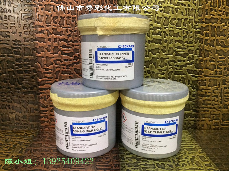愛卡銅金粉:青金粉、紅金粉、古銅粉,銅金粉是一種浮型片狀顏料,由一定比例的銅、鋅和鋁合金,經熔煉、煉磨、分級而成,其色澤亮麗、金屬較強、根據不同的應用領域和所需達到的金屬效果,可通過選擇不同顆粒和色相來實現。銅金粉可適用于油漆、油墨、涂料、墻紙、塑膠、硅膠、印刷、印花、皮革、玩具、工藝品等