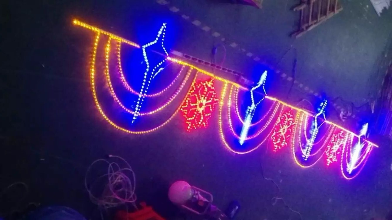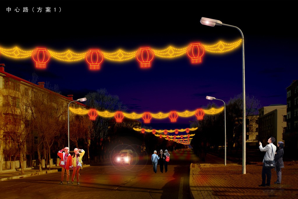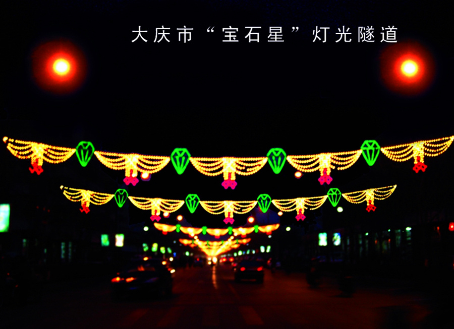 建設路LED過街燈 過街燈廠家 2017春節路燈桿造型燈亮化