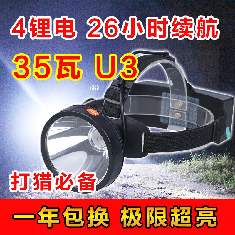35W 頭燈 強光充電遠射戶外釣魚礦燈 U3鋰電狩獵燈 打獵露營包郵