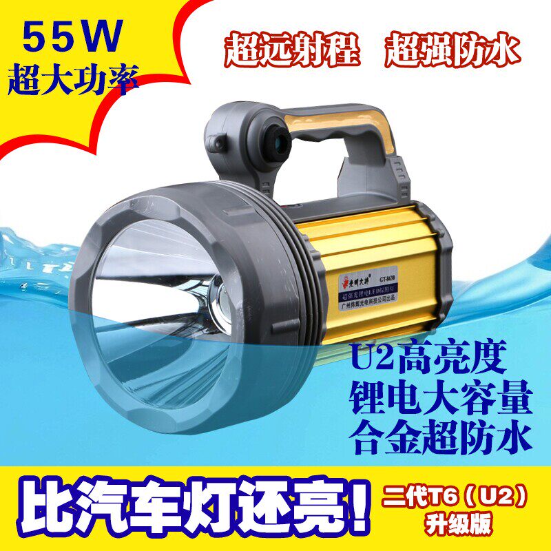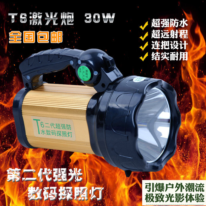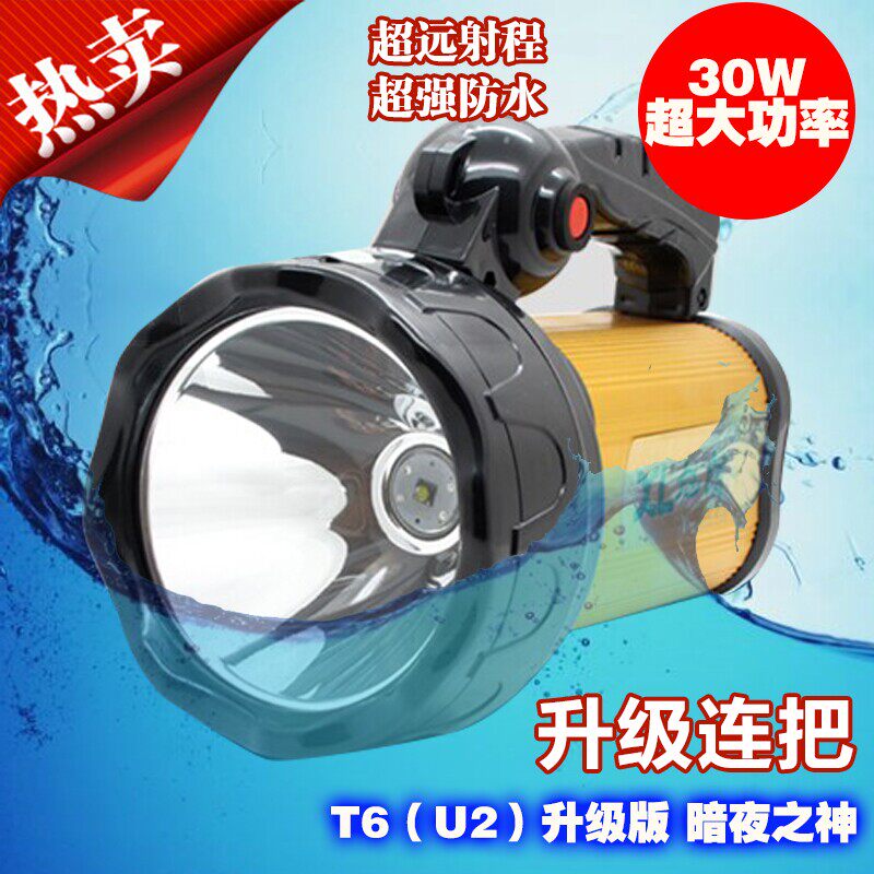旭朗T6探照燈連把式戶外強光手提燈遠射手電筒狩獵垂釣防水30W