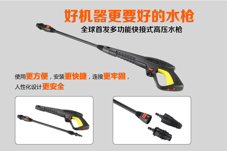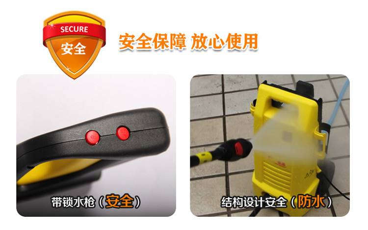 該款機器定位是家用高壓洗車機,1700W超大功率,水壓強勁,洗車超快;該款機器采用220V全銅電機加自吸組件,經久耐用;獨特關槍停機功能,節能環保;自吸兩用,快插連接,方便快捷;如果是家用清洗、洗車、洗地、洗墻、洗浴室、沖洗青苔等等可直接下單,絕不會讓您失望的。(注意:由于機器壓力比較大,請勿將槍口直接對人噴射)