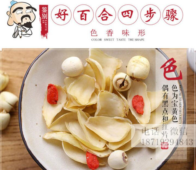 百合干有很高的藥用價值。解毒、理脾健胃、利濕消積、寧心安神、促進血液循環等功效。主治勞嗽、咳血、虛煩驚悸等癥,對醫治肺絡疾病和保[jian]抗衰老有特別功效。據藥理研究表明,百合干有升高白細胞的作用,因此對多種癌癥都有較好的療效。風寒外感者忌用。其中藥百合功效好,為藥食兩用百合。