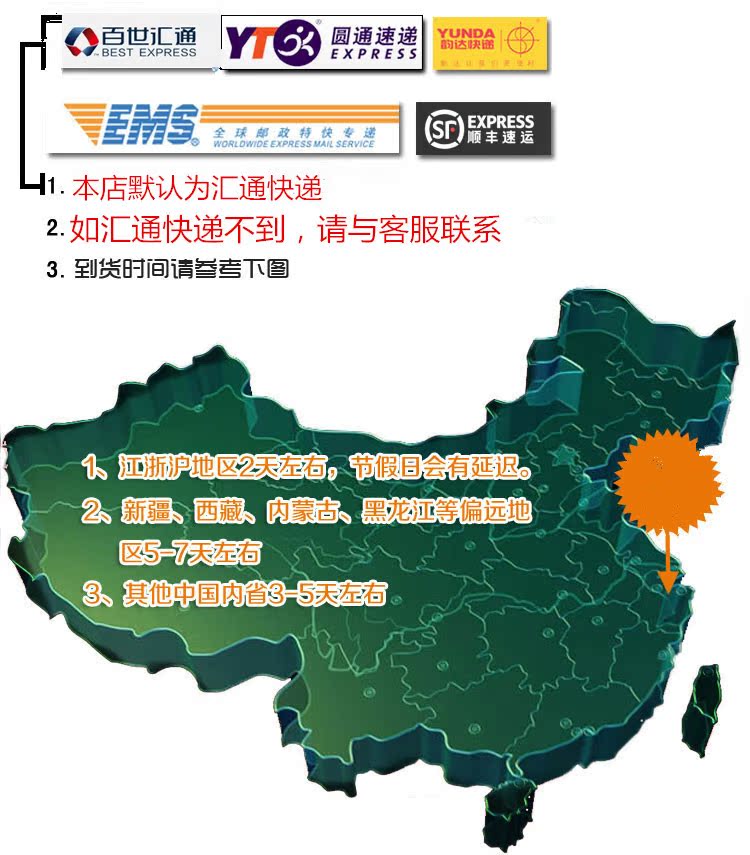 本店默認為匯通快遞,如果不能到達,請聯系客服更換為其他快遞