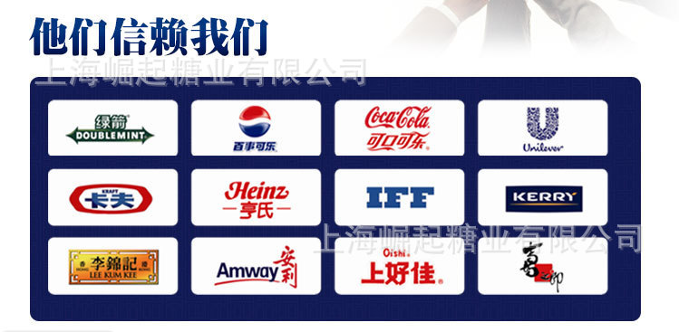 多年來,上海崛起糖業有限公司與湖北中楚大地糧油貿易有限公司,以建立行業服務品質標桿為目標,不斷提升服務質量,不斷為食品工業客戶提供更多更好更廣的產品為己任,把銷售放在物流最發達的上海,把生產放在華中湖北東南部,有效的實現了產銷一體化,產品定制化,OEM代工產品的服務!