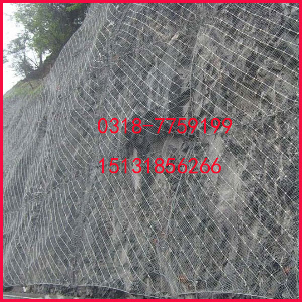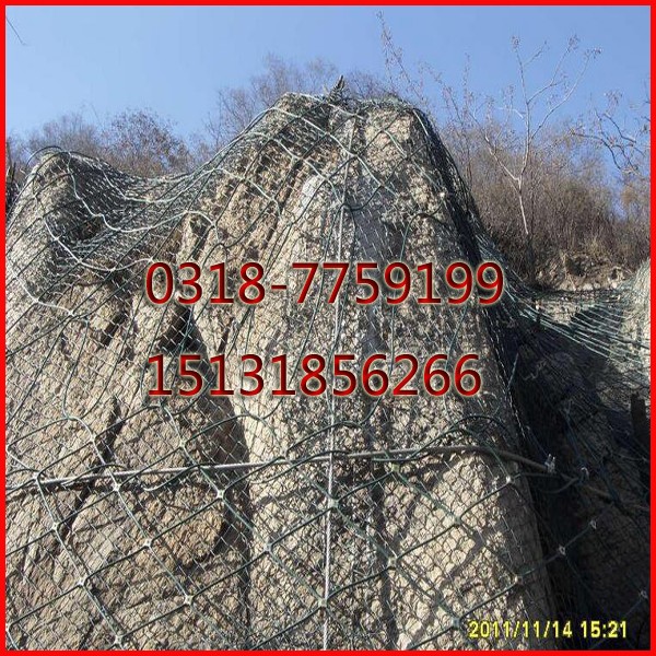 主動防護系統:采用高強熱鍍鋅鋼絲繩、鋼絲網、不低于AB級的防腐處理,其防護壽命根據環境條件的不同一般可達30-50年。主要對邊坡失穩潛在擴離落石危險的坡面進行防治,以縱橫交錯的Φ16支撐鋼繩,按坡形(4.5X4.5m或者4.8X4.8m)方形模式布置成網柜,并與4X4m的主動網用縫合繩進行預張拉,使該系統對坡面施以一定的方向預緊壓力,從而提高危巖石的穩定性,阻止落石的發生,同時該系統不會影響地下水的正常流動排泄,并給邊坡的生態治理提供了先決條件。