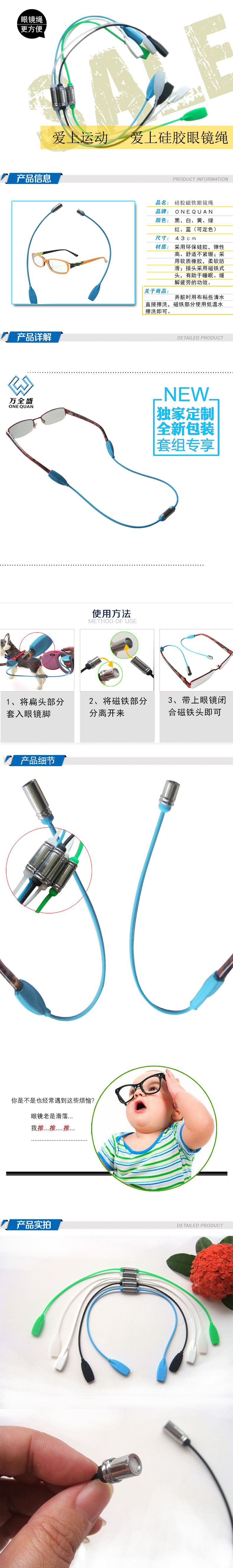 供應時尚環保新穎可定制眼鏡繩子 掛繩 定做帶磁鐵頭式硅膠