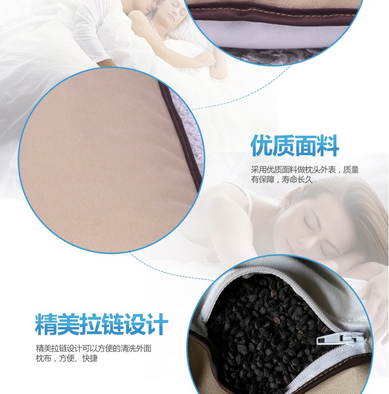 蕎麥殼:蕎麥具有芳香開竅、活血 益智醒腦、調養臟腑、和調陰陽等作用,藥物經過特殊加工之后,作為枕芯裝入枕中,或制成薄型藥袋置于普通枕頭上,睡覺時枕用達到聞香療病的效果。
