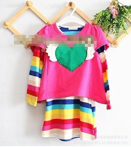 2012春款童裝女童長袖T恤兩件套套裝 愛心寶貝套裝