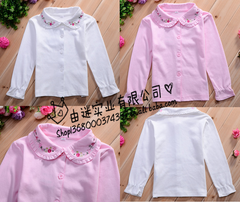漂亮小公主襯衣,領上精美的繡花和蕾絲花邊,針織棉面料,手感好,適合春秋季節穿著,很百搭的一款襯衣,單穿、配背帶裙或配背帶褲都非常漂亮的,小公主必備單品...