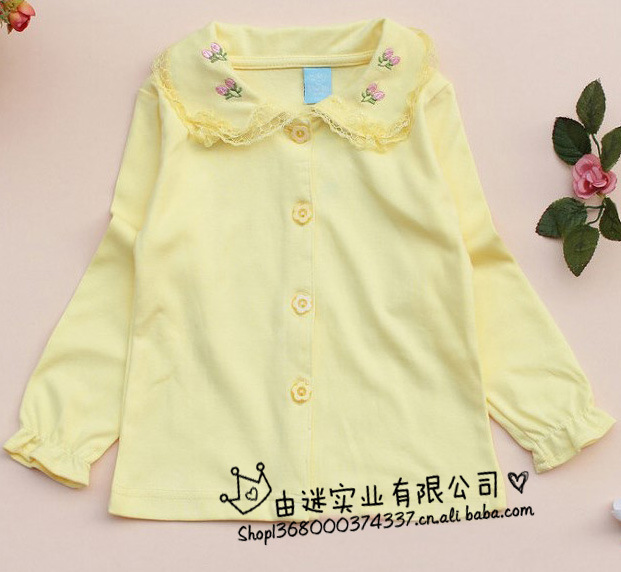 漂亮小公主襯衣,領上精美的繡花和蕾絲花邊,針織棉面料,手感好,適合春秋季節穿著,很百搭的一款襯衣,單穿、配背帶裙或配背帶褲都非常漂亮的,小公主必備單品...