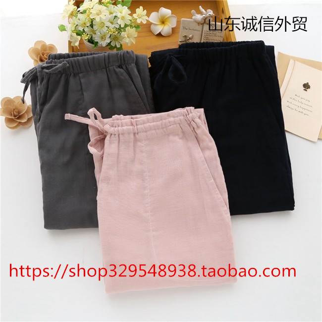 純棉雙層紗布男女士情侶家居褲 長褲