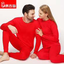 正品婚慶 本命年純棉男士打底秋衣秋褲 情侶大紅保暖內衣套裝批發¥27