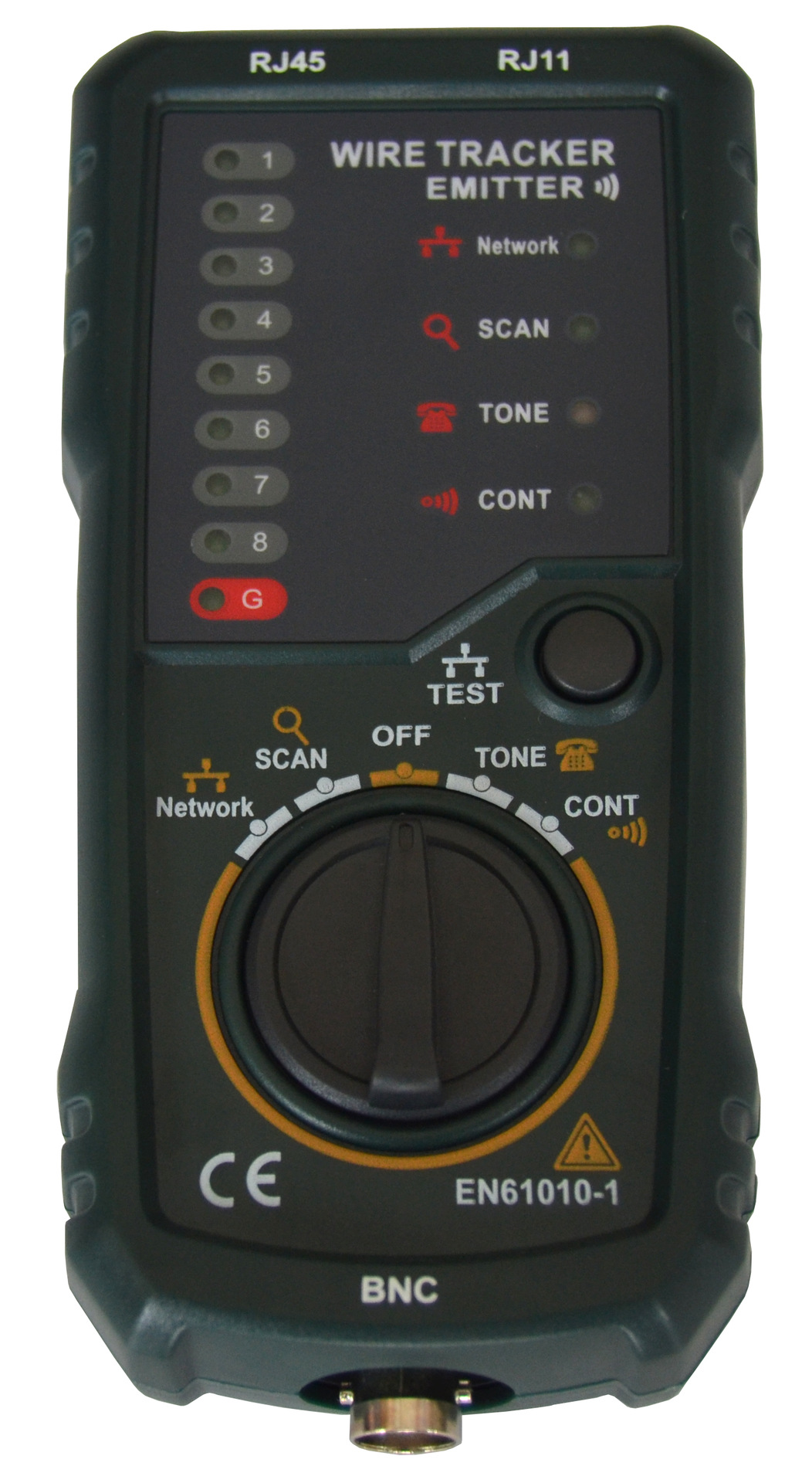 尋線功能:可對RJ11、RJ45、BNC接口線纜尋線,對其它金屬導線的尋線可通過適配器。