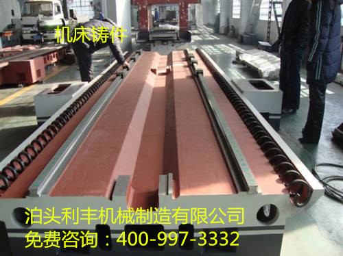 機床鑄件的特點:耐磨性與消震性好。由于鑄鐵中石墨有利于潤滑及貯油,所以耐磨性好。同樣,由于石墨的存在的消震性優于鋼。工藝性能好。由于灰口鑄鐵含碳量高,接近于共晶成分,故熔點比較低,流動性良好,收縮率小,因此適宜于鑄造結構復雜或薄壁鑄件。另外,由于石墨使切削加工時易于形成斷屑,所以灰口鑄鐵的可切削加工性優于鋼。
