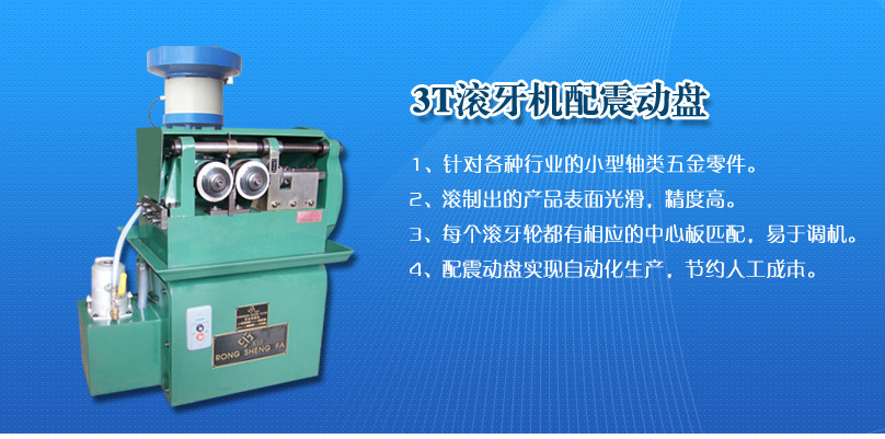 3T滾牙機是一款方便簡單的螺紋加工機,他的加工精度遠超曾經老式的搓絲機,為達到產品更高的要求。我公司還專業改自動化生產,節約人工成本,提高生產效益 .