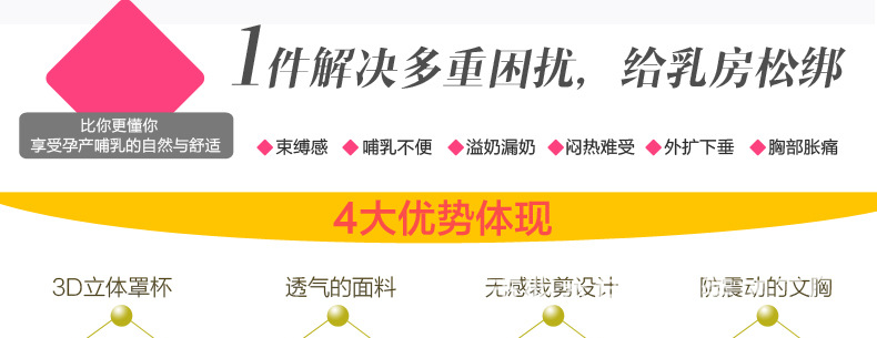 由于孕媽孕期哺乳期胸部勻速增長,為緩解背部壓力而設計的寬肩帶文胸,舒適不緊勒無壓迫感。
