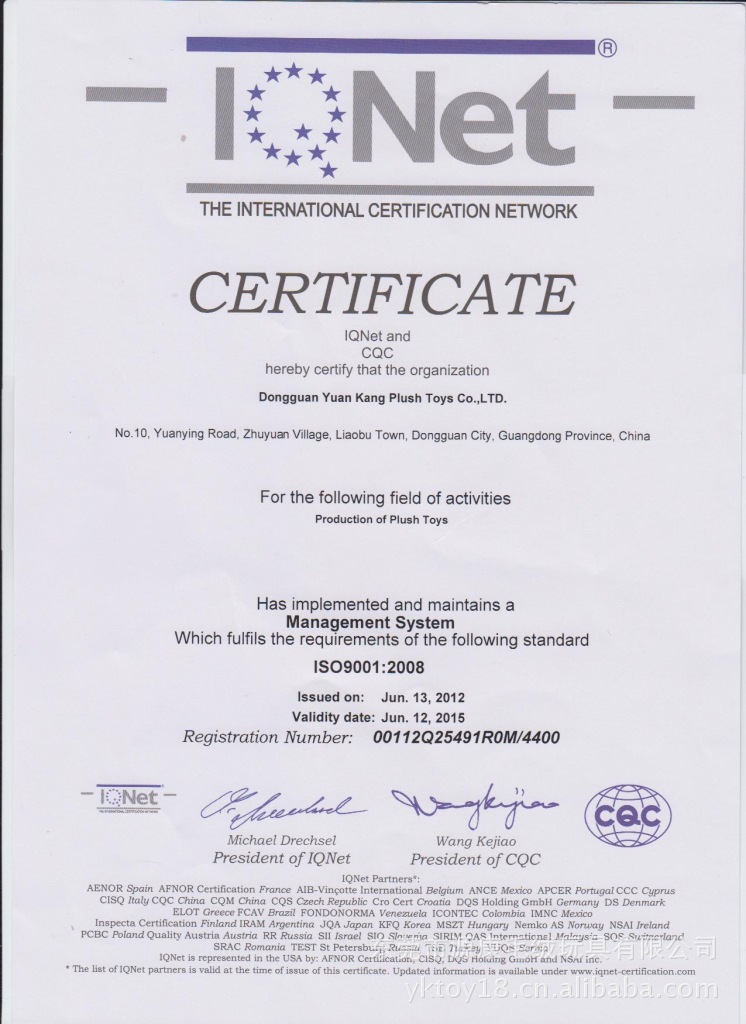 尺寸可根據客戶需要定做高8cm-2.5M玩具面料可定做超柔、邊綸布、CVC、毛巾布、PV絨、密絲絨、菊花絨、賽樂絨、珊瑚絨、南韓絨、毛料等多種面料,所有材料均為環保材料填充環保PP棉,泡沫粒子或者膠粒,也可填充香料、竹炭包等工藝五官、Logo、花紋等可刺繡、絲印或者熱轉印商標可根據客戶圖檔制作印嘜、織嘜或商標包裝單個產品入一個PE(或者OPP)膠袋,再入外箱包裝。 也可根據客戶需要定做紙盒、PVC(或者PET)盒子單價可報出廠價、FOB價格,工廠可開17%增值稅產品認證可通過CE、EN-71、ASTMF963、CPSIA等玩具出口歐美標準! 以下有證書展示,歡迎聯系業務員索取報告查詢!工廠認證ISO9001:2008質量認證體系、ICTI、CQC、C-TPAT等