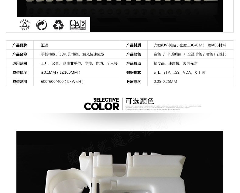 公司服務涵蓋面廣,主要適用范圍:適于樣品展示和結構裝配驗證。作模型使用:可做透明 半透明 白色件,抗壓強、韌性高,可拋光、上色、磨削、鉆銼、噴油,電鍍。