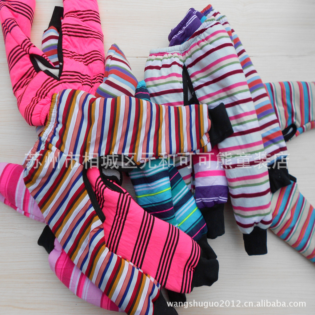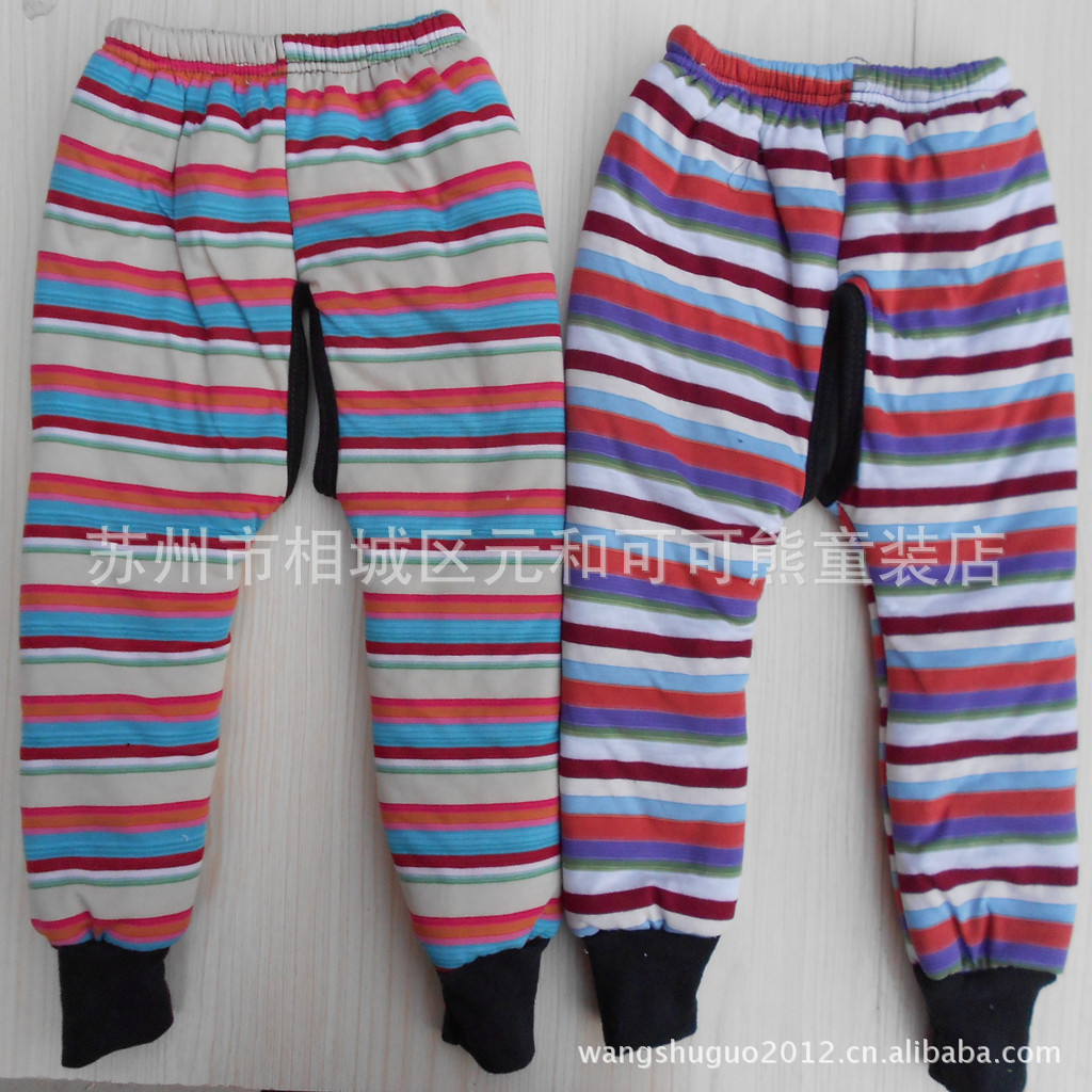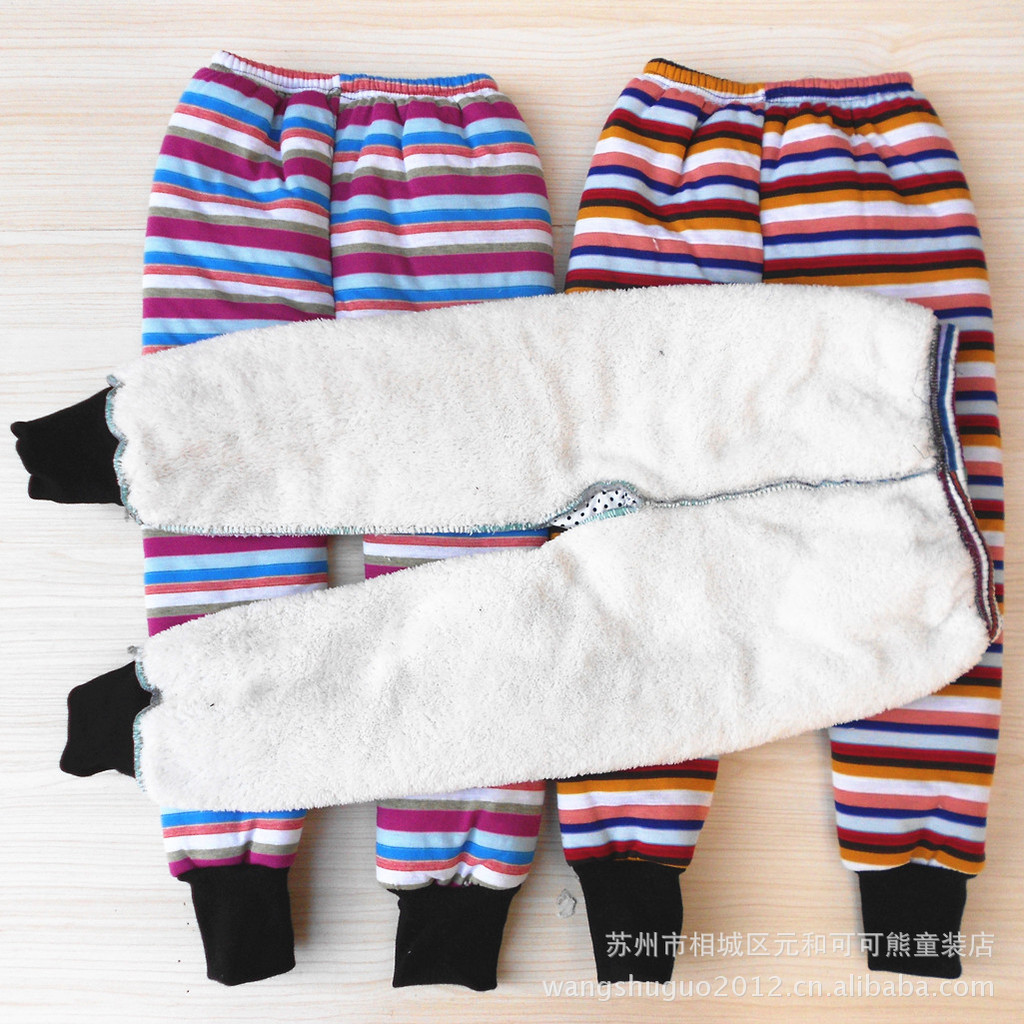 兒童秋冬羊羔絨加厚保暖棉褲 小童條紋開襠棉褲 外貿童褲