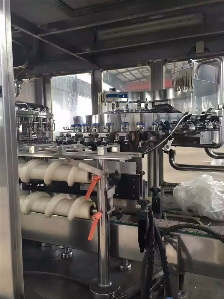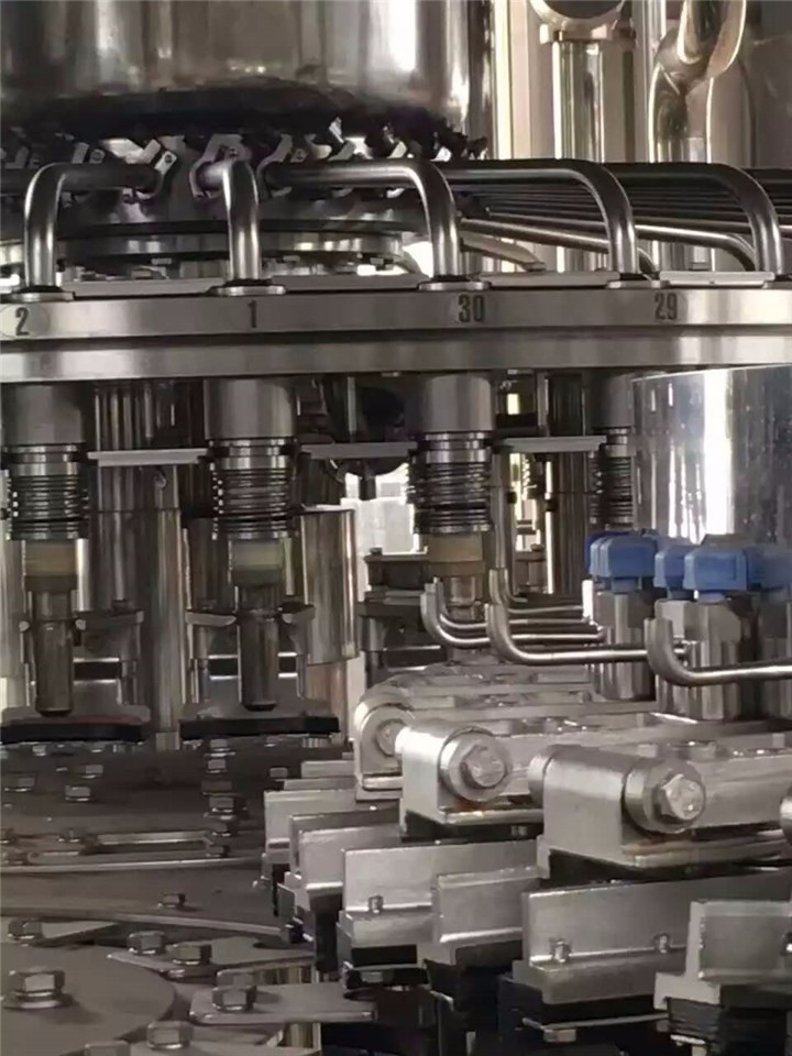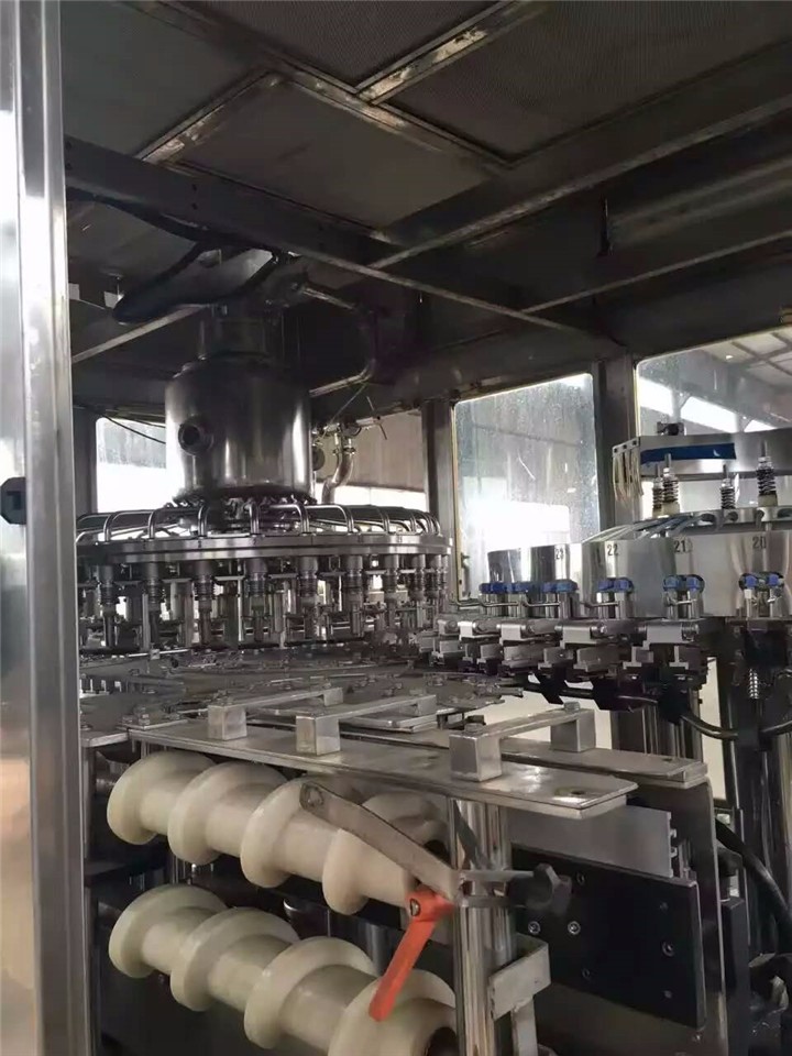 是在高于大氣壓力下進行灌裝,也可分為兩種:一種是貯液缸內的壓力與瓶中的壓力相等,靠液體自重流入瓶中而灌裝,稱為等壓灌裝;另一種是貯液缸內的壓力高于瓶中的壓力,液體靠壓差流入瓶內,高速生產線多采用這種方法。壓力灌裝機適用于含氣體的液體灌裝,如啤酒、汽水、香檳酒等。
