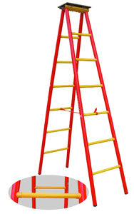 絕緣人字梯材質選用環氧樹脂結合銷棒技術,整體無金屬結構組成。梯撐、梯腳防滑設計不易疲勞,安全程度高,絕緣性能強;吸水力低,耐腐蝕,重量輕,攜帶方便,機械性能高,適用于500kV以下電壓等級帶電經路作業;變電維護作業。