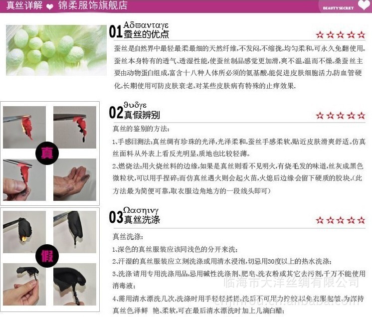 何謂重磅真絲:重磅真絲是以普通真絲面料的兩倍用絲量,經特殊工藝精紡而成??椢锛毭芎駥?,手感柔和滑潤,而且垂感很強,品質高雅。除了具備普通絲綢面料的特點外,還具有縮水非常小、挺括、易整理等特點。重磅真絲面料的質量要高于普通真絲面料,尤其重磅真絲面料極不易掛傷,是其它絲綢面料無法比擬的。