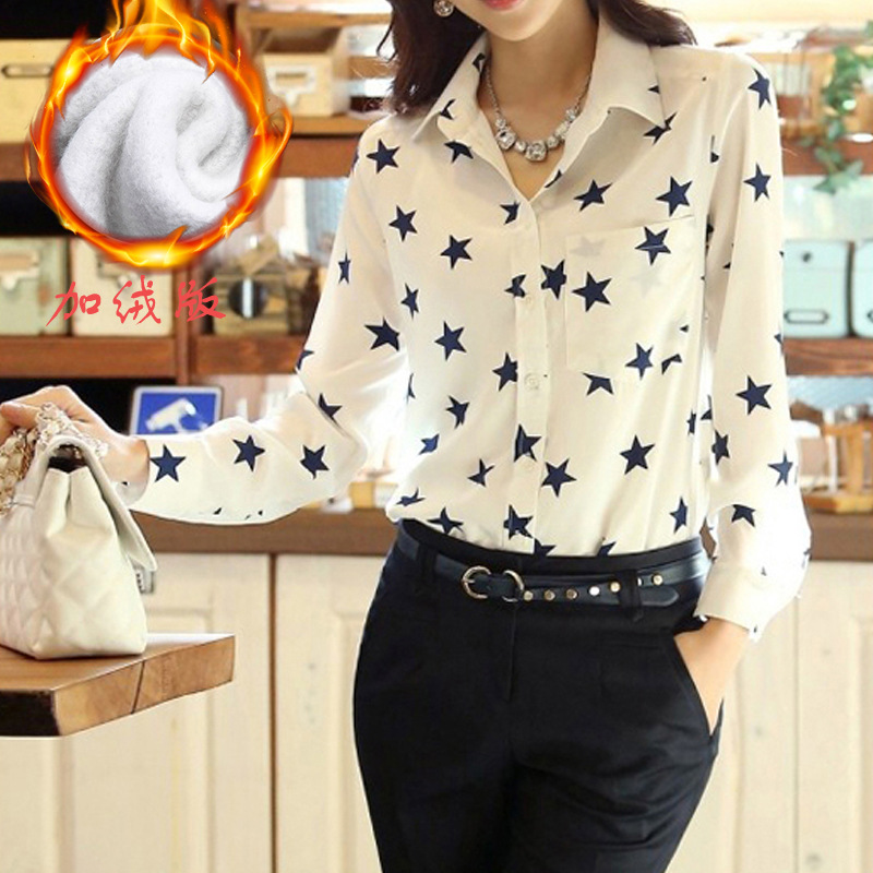 雪紡衫女2015 加絨加厚女裝上衣打底開衫百搭休閑長袖襯衫¥55立即搶購