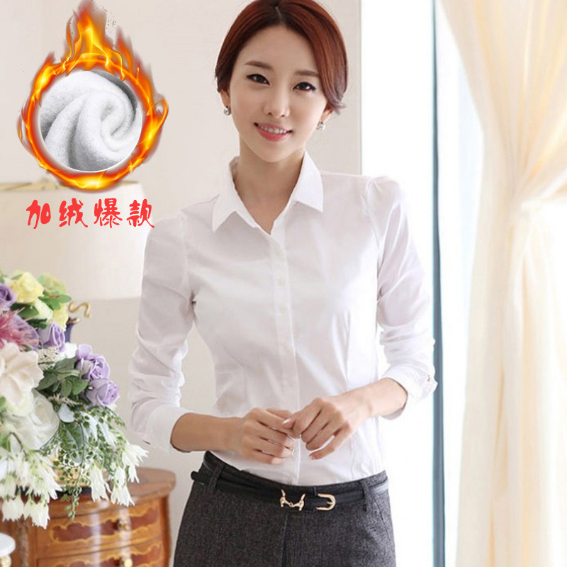 冬季打底衫2015秋冬新款白襯衫女正裝上衣大碼職業外搭長袖襯衣¥55立即搶購