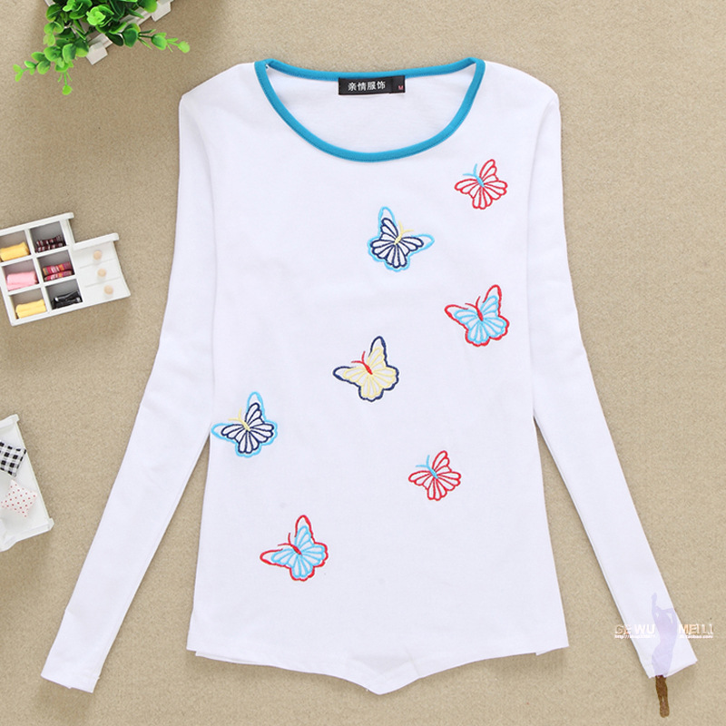 廠家直銷新款品質民族風長袖T恤彈力純棉繡花女式打底衫特價 促銷
