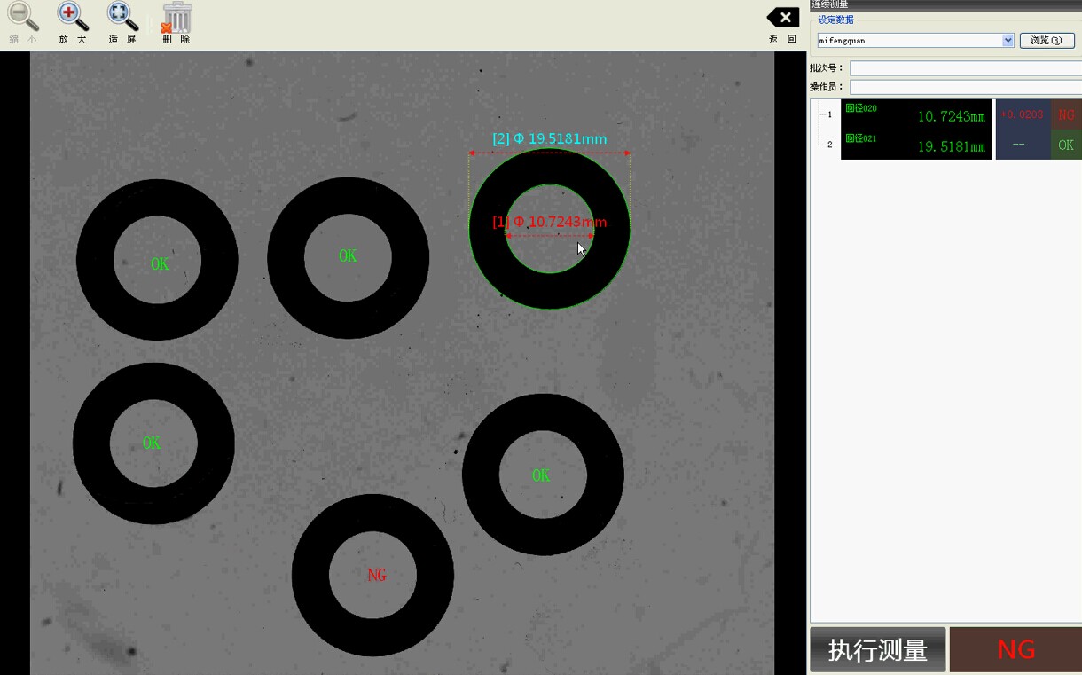 可以一次性在平臺上放置多個O型圈,對放置的位置無任何要求。軟件對每個工件的位置進行鎖定,一次性同時測量,大大提高測量效率。