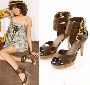 2012爆款 粗高跟 魚嘴軟面皮時尚羅馬風格女式涼鞋批發J810