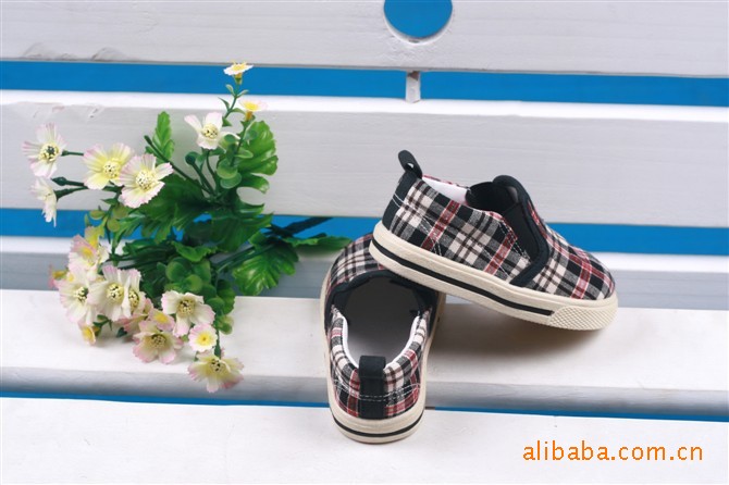 廠家直銷批發供應外貿童帆布鞋耐磨黑色條紋嬰兒童鞋