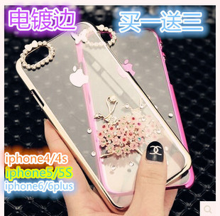 ¥12.00電鍍透明蘋果4s/5s iphone6/6 plus鉆手機殼外殼保護套保護殼批發