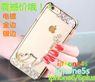 ¥6.50掛鏈裝飾手機殼 蘋果6/6plus創意手機殼 蘋果4 5s貼鉆手機保護套