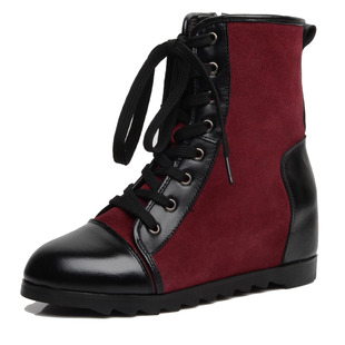 溫州女鞋廠家 新款內增高平底真皮女靴 韓版拼色短靴 馬丁靴女鞋